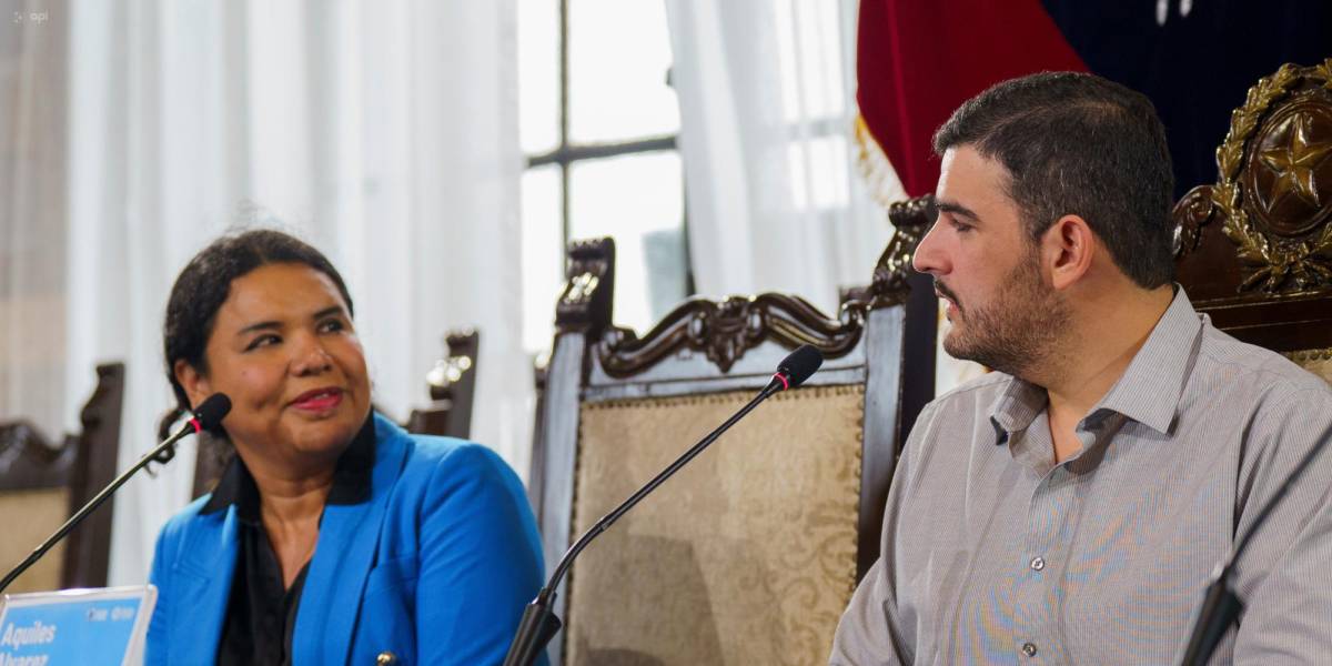 Diane Rodríguez, representante de la asociación Silueta X, en el Municipio de Guayaquil con el alcalde Aquiles Álvarez (API)
