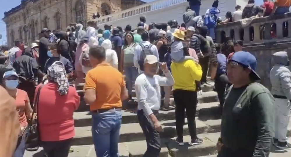 Captura de pantalla de video difundido en Twitter que muestra el linchamiento de un sospechoso de asesinatos en Cayambe, el sábado 14 de septiembre.