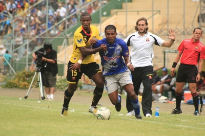 El juez central del partido, Sandro Vera, cometía dos errores, uno en contra de cada equipo. Primero al no pitar una clara falta penal por carga de Rorys Aragón sobre Walter Iza, y luego un evidente bloqueo, dentro del área, de José Luis Quiñónez sobre Pedro Larrea.