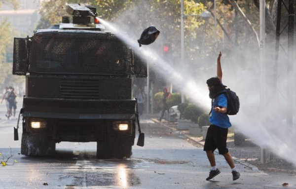 Por la mañana los adolescentes también fueron dispersados con gruesos chorros de agua que botaron a varias personas y gases lacrimógenos, en tanto que policías montados los persiguieron en la plaza Italia, lugar de concentración de las más diversas protestas en Santiago.
