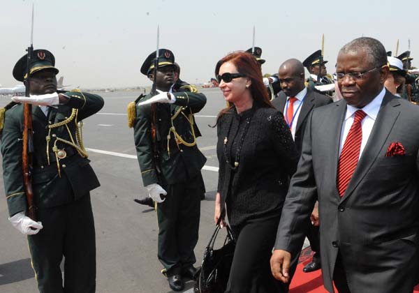 La Presidenta arribó hoy a la República de Angola para realizar una visita de Estado en la que mantendrá un encuentro con su par José Eduardo Dos Santos y encabezará una misión comercial.