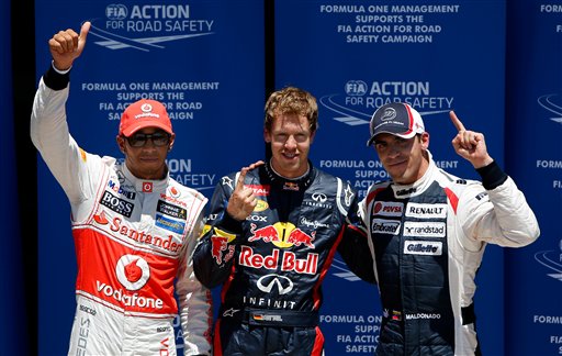 Sebastian Vettel conquistó el sábado su tercera pole consecutiva en el Gran Premio de Europa de la Fórmula Uno, en el que el venezolano Pastor Maldonado largará tercero.