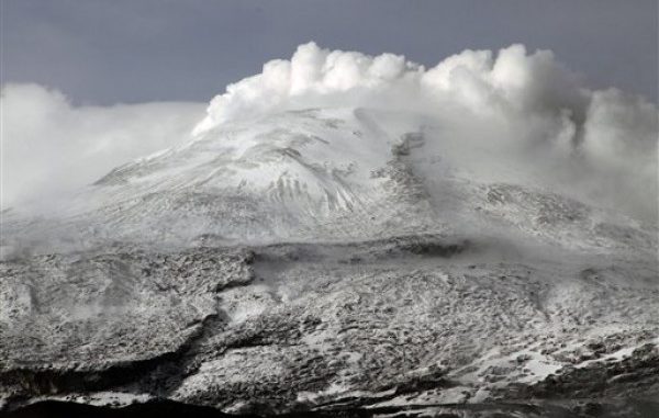 BOGOTA (AP) — Aunque las autoridades geológicas redujeron el nivel de alerta sobre el volcán Nevado del Ruiz, advirtieron este lunes que sigue inestable y presenta una columna de vapor, gas y ceniza de al menos 300 metros de altura.
