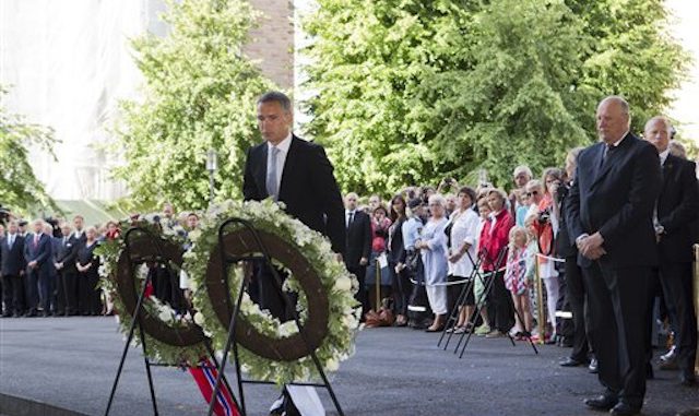 En una ceremonia para depositar ofrendas en el sitio de la explosión, el primer ministro Jens Stoltenberg dijo que Breivik había fracasado en su objetivo declarado de destruir el compromiso de Noruega con una sociedad inclusiva y multicultural.