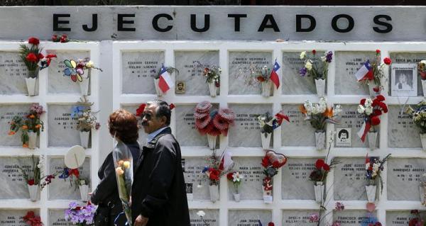 SANTIAGO DE CHILE (CHILE), 01/11/2013.- Dos personas caminan frente al pabellón de las personas ejecutadas durante la dictadura militar de Augusto Pinochet hoy, viernes 01 de noviembre de 2013, el Cementerio Metropolitano de Santiago de Chile (Chile). Miles de chilenos acudieron hoy a los cementerios para visitar sus muertos, año en que por primera vez se realizaron actividades artísticas en varios de los recintos y también se entregó una atención especial a la gente de la tercera edad. EFE/Felipe Trueba