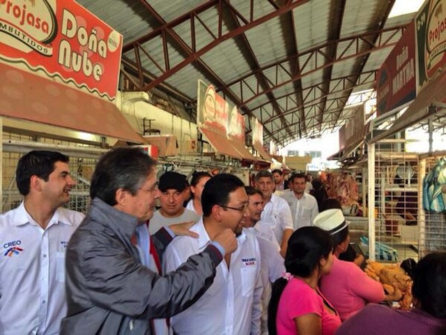 Lasso también visitó esta mañana el mercado Recinto Ferial con Virgilio Saquicela, candidato a alcalde de Azogues.