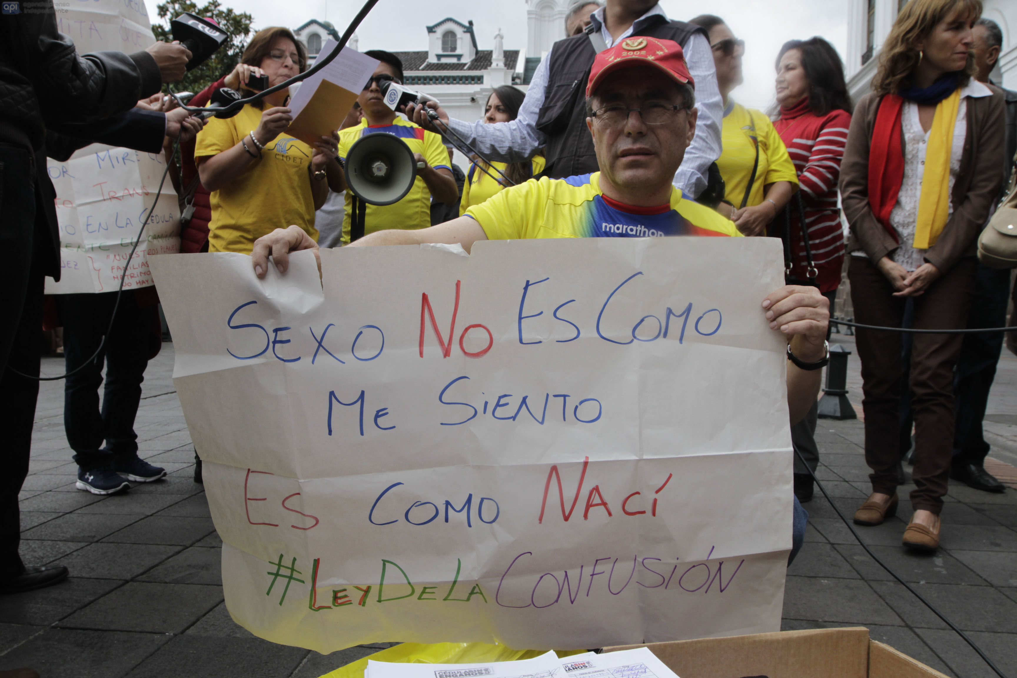 ECUADOR, Quito (11-01-2016). El colectivo Vida y Libertad presentaron a las afueras del palacio de Carondelet 50 mil firmas que rechazan 2 articulos de que modificarian el sexo por genero en las cedulas de identidad. FOTOS API / JUAN CEVALLOS.