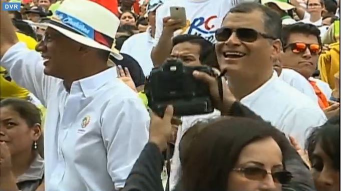 Captura de pantalla de la Concha Acústica en el Parque de los Samanes, durante la transmisión vía streaming del sitio oficial El Ciudadano de la celebración de los 9 años de gobierno de Alianza PAIS el 16 de enero de 2016.