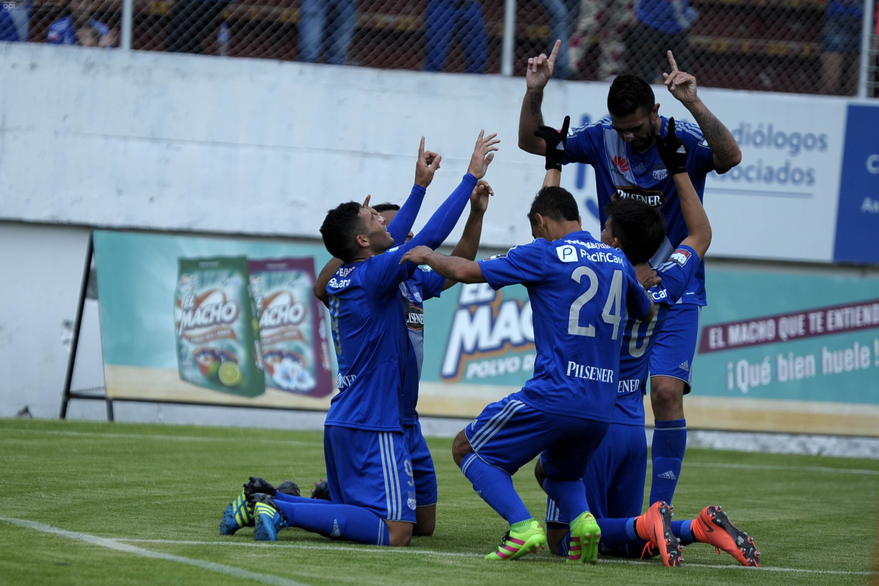 2016-04-010-QUITO-ECUADOR. Partido por el Campeonato Nacional Serie A. La Sociedad Deportiva AUCAS recibe al Club Sport EMELEC en el Estadio de Chillogallo.Gol de Emelec por medio de HERRERA. APIFOTO/JUAN RUIZ