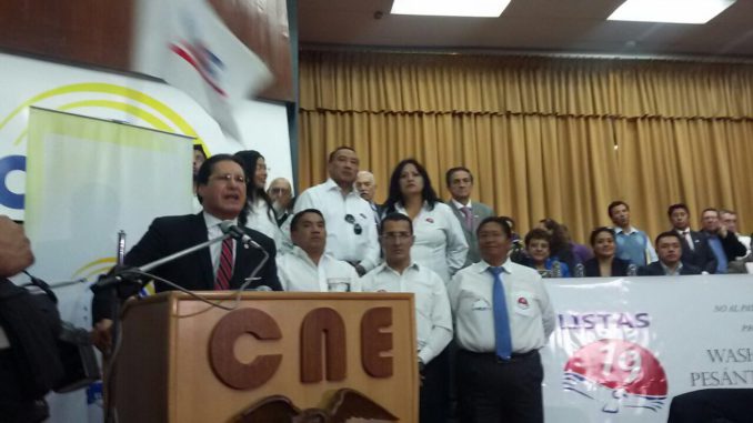 El exfiscal de la Nación, Washington Pesántez, inscribió la mañana de este jueves su candidatura a la presidencia de la República, por el movimiento Unión Ecuatoriana.