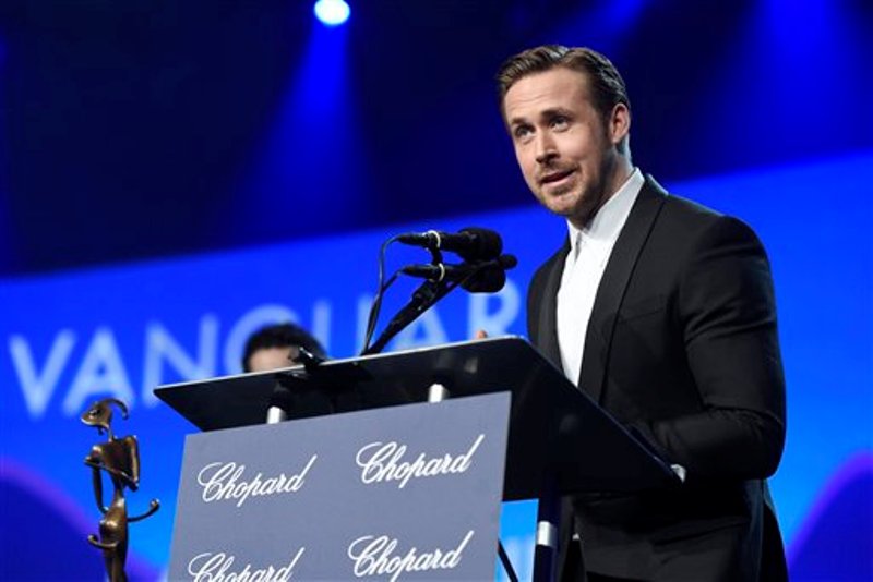 Ryan Gosling recibe el premio Vanguard para «La La Land» en la ceremonia de premiación de la 28a edición anual del Festival de Cine de Palm Springs, el lunes 2 de enero de 2017 en Palm Springs, California. (Foto Chris Pizzello/Invision/AP)