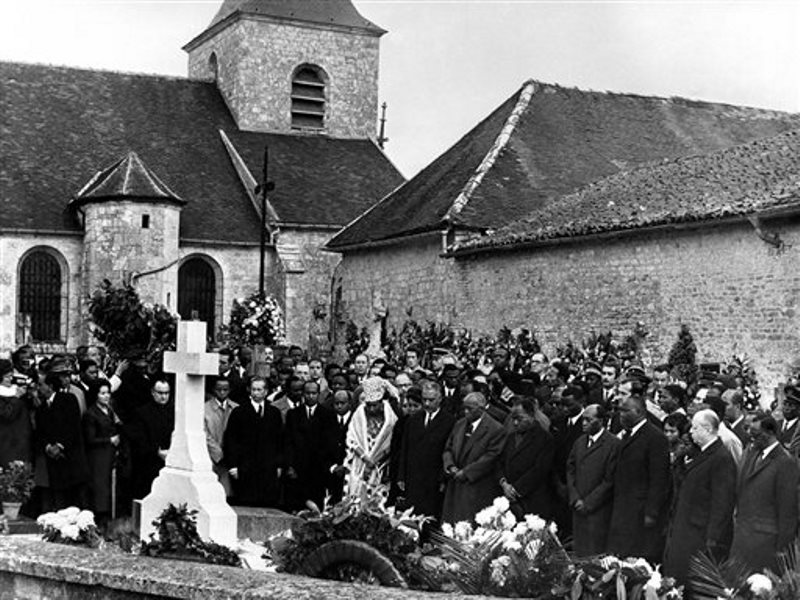 Fotografía de archivo del 13 de noviembre de 1970 de dolientes reunidos frente a la tumba del expresidente francés Charles de Gaulle en el cementerio de Colombey-les-Deux-Eglises, Francia. (AP Foto, Archivo)