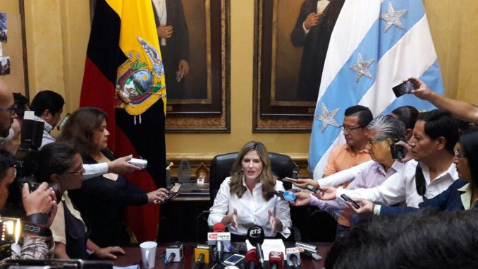 Doménica Tabacchi ha manifestado su declinación a continuar con su pre candidatura a la Alcaldía de Guayaquil. «Desde donde me invite el pueblo Ecuatoriano seguiré luchando buscando progreso, libertad y entendimiento» manifestó mediante rueda de prensa cumplida hoy.