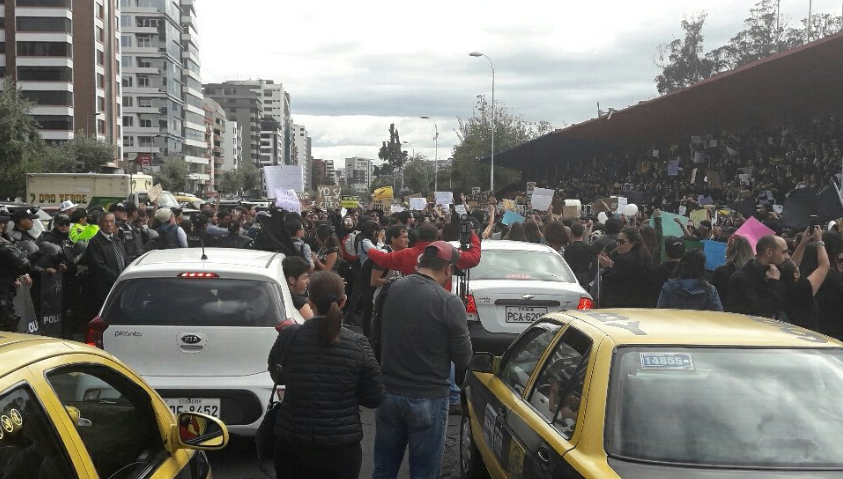 marcha por martha Marcha en la Shyris, Quito, contra la violencia machista, el 10 de enero de 2019. Foto tuiteada por la periodista @GYRivadeneira, de El Universo.