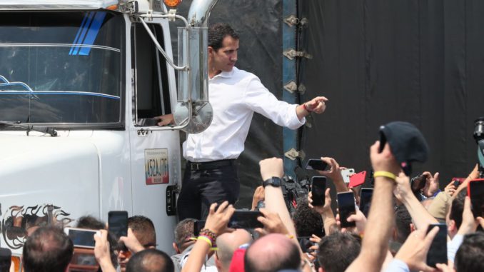Guaidó ha hecho un llamado este sábado a las Fuerzas Armadas a ponerse del «lado correcto de la historia» y permitir el ingreso de los 14 camiones que partieron de Cúcuta con 280 toneladas de ayuda humanitaria.