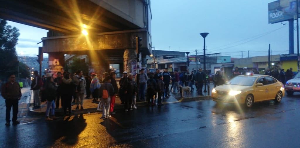 Cientos de personas en las calles en las primeras horas del paro nacional de los transportistas contra las medidas del Presidente Lenín Moreno. Foto de la cuenta de Twitter de la Agencia Municipal de Tránsito.