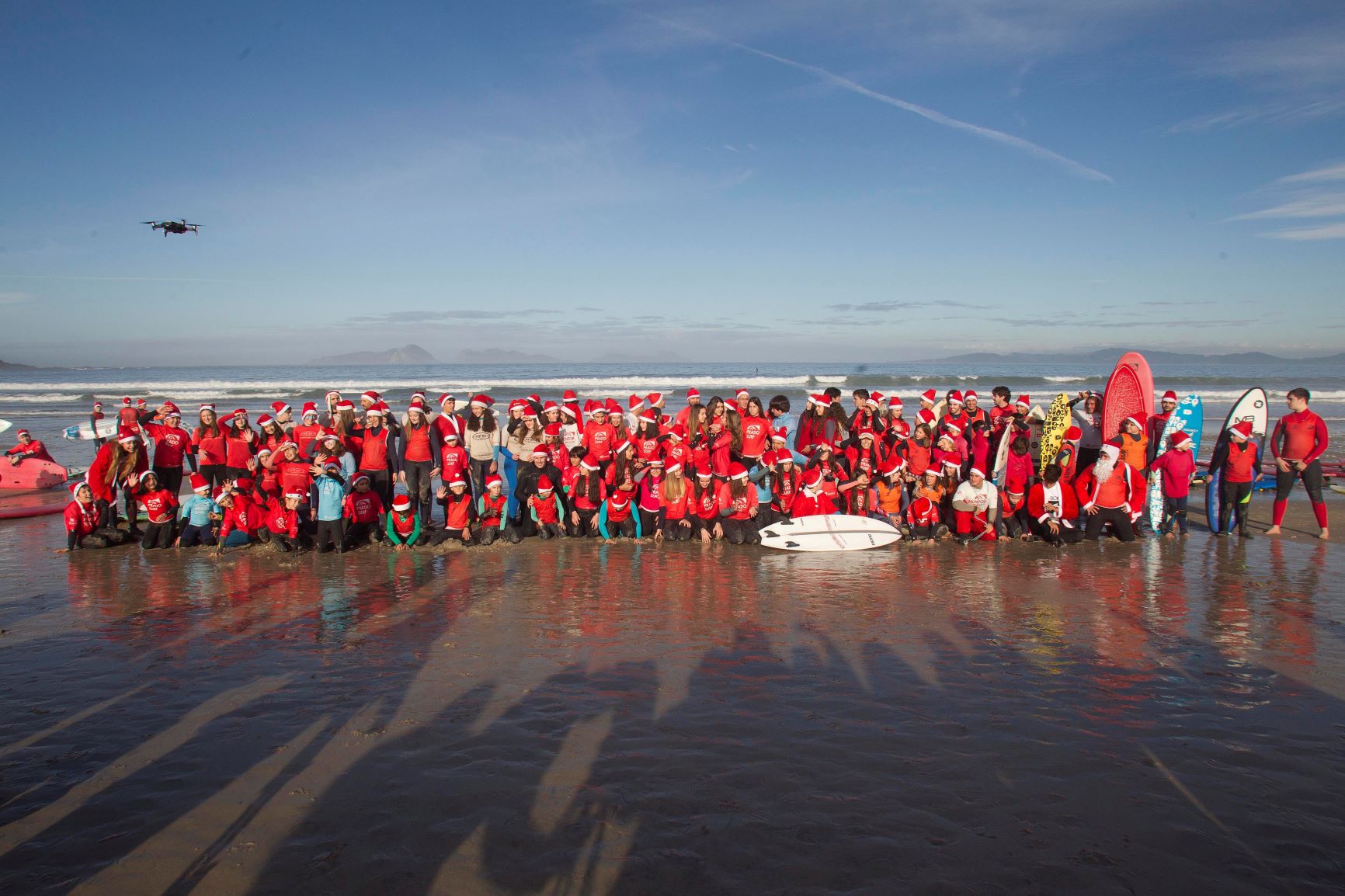 Un año más los Papá Noeles surferos se han dado cita en la playa de Patos en Nigrán para cabalgar las olas en un día primaveral, que hacía tiempo que no se veía en Galicia, España . EFE / Salvador Sas