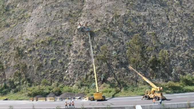 El trabajo técnico de extracción de la roca de un talud en la avenida Simón Bolívar no ha terminado todavía a las 17h00, por lo que la restricción vehicular en el tramo se mantiene parcialmente, según ha conocido este medio. Según el Cabildo, hasta el momento los trabajos han avanzado en un 60%.