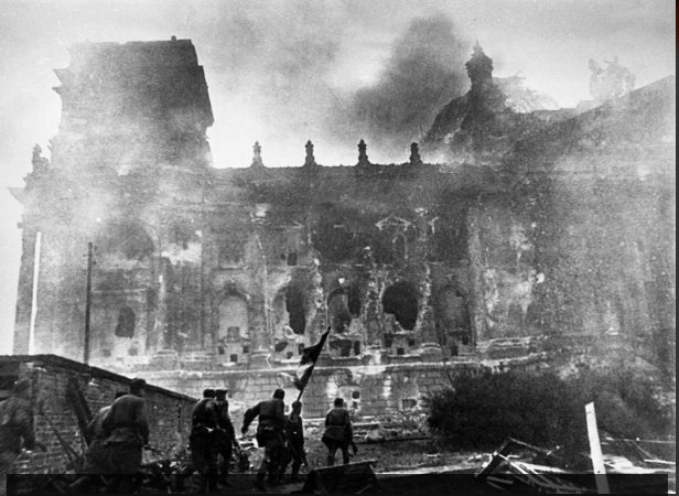 «El 30 de abril comenzó el asalto al edificio del Reichstag. La primera bandera roja en su fachada la izaron los soldados (…) Rajimzhan Koshkarbáev y Grigori Bulátov«, informó el Ministerio de Exteriores ruso en su cuenta de Instagram.