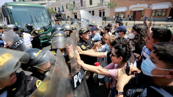 Aproximadamente a las 9:30 de la mañana (14.30 hora GMT), la Policía Nacional de Perú echó abajo con una tanqueta la entrada de la Universidad Nacional Mayor de San Marcos e ingresó al campus para desalojar a cientos de manifestantes, que más tarde fueron detenidos y trasladados a distintas instalaciones policiales.
