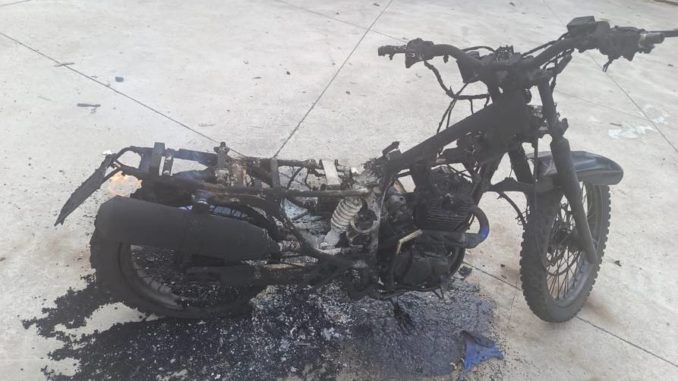 Sin embargo, una motocicleta usada por los antisociales fue abandonada en el sitio. Ante esto, las personas prendieron fuego al vehículo que fue consumido en su totalidad por las llamas.