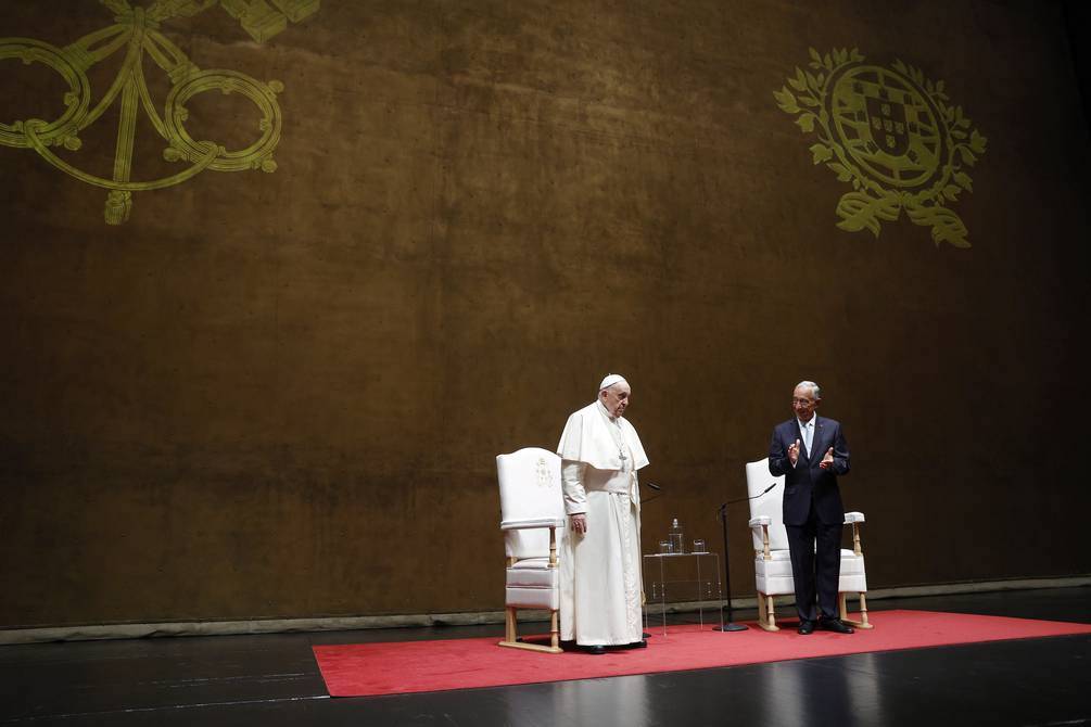 El papa estrenó el programa oficial de su visita con una reunión en el Palacio Nacional de Belem con el presidente luso, Marcelo Rebelo de Sousa, tras llegar a Lisboa.