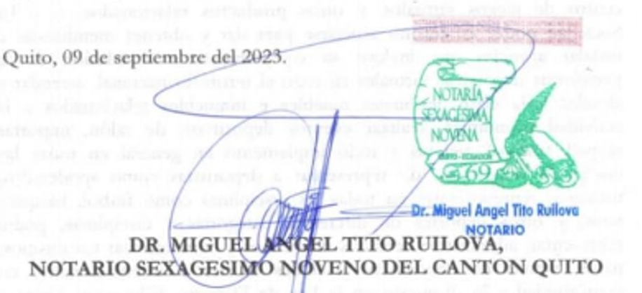NOTARÍA SEXAGESIMO NOVENA DEL CANTÓN QUITO: