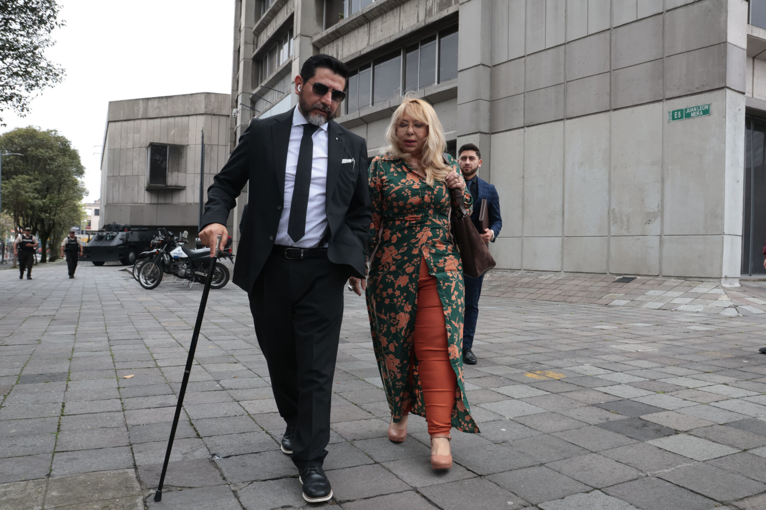 Quito 03 de abril del 2025 Jueza Nubia Vera junto a su abogado Washington Andrade acudieron a rendir versión en el caso Pen Drive en la Fiscalia General. API/HENRY LAPO
