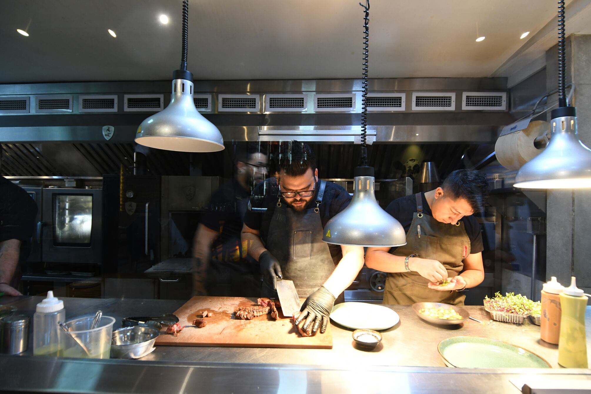 QUITO.- Luis Maldonado (c), chef del restaurante Tributo, de Quito. El lugar fue elegido entre los 101 mejores restaurantes de carne a nivel mundial. Foto: Alfredo Cárdenas, periodista de El Universo, publicada en ese diario, en abril de 2023.