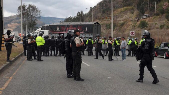 La medida busca «detener la radicalización de las medidas de hecho tomadas en las provincias de Carchi, Imbabura, Pichincha, Azuay, Bolívar, Cotopaxi y Santo Domingo, evitando así mayor afectación a la población ecuatoriana», anota el decreto en momentos en los que se mantienen bloqueos parciales de vías en dos de las veinticuatro provincias del país.
