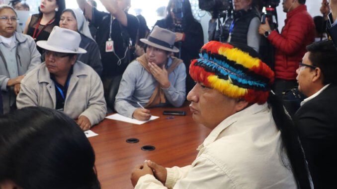 Marlon Vargas, presidente de la Confederación de Nacionalidades Indígenas del Ecuador (Conaie), la organización social más grande del país y que convocó a las manifestaciones, reiteró en la comisión legislativa que no «declinarán en la lucha» que han emprendido para que el presidente Daniel Noboa dé marcha atrás en su decisión de eliminar el subsidio al diésel.