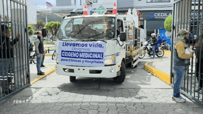 Según informó el Ministerio de Salud ya se logró ingresar tubos de oxígeno al hospital San Luis de Otavalo tras un operativo humanitario.