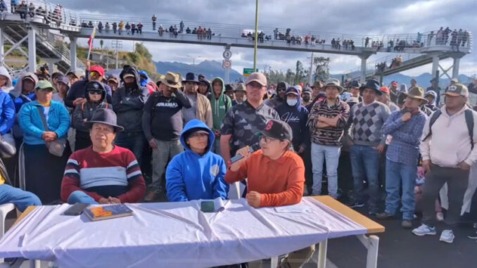 En medio de la la Panamericana Norte, a la altura de Otavalo, en Imbabura, la dirigencia del Pueblo Ilumán, comunidad indígena de la zona, se pronunció sobre el paro convocado por la Conaie, en la undécima jornada de la medida.