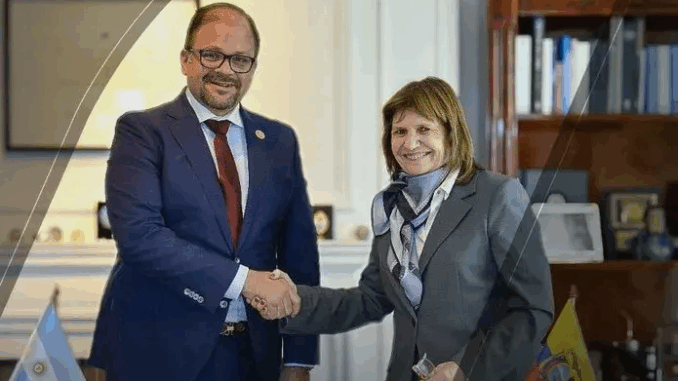«La decisión fue comunicada por la ministra de Seguridad de la Nación de Argentina, Patricia Bullrich, a la embajadora de Ecuador en ese país, (la ex fiscal general) Diana Salazar Méndez», señaló el ministerio en un comunicado difundido enredes sociales.