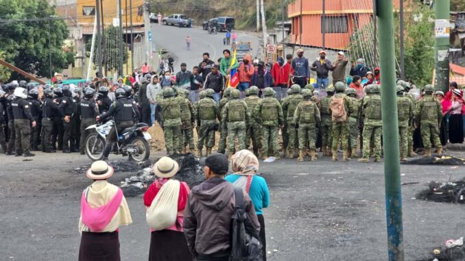 El Ejército Ecuatoriano y la Policía Nacional habilitaron la vía Riobamba-Guaranda, en el sector Vinchoa, la cual se encontraba bloqueada por manifestantes.