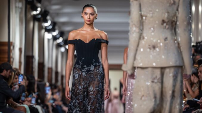 El primero en mostrar su colección por la tarde en París ha sido Giambattista Valli. El creador italiano que, además de prêt-à-porter, crea alta costura, ha hecho nuevamente del romanticismo y la sensualidad dos de los ingredientes, con motivos de flores estampados, así como tejidos transparentes, entre otros.