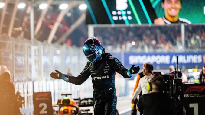 En 2023, el Russell se chocó en la última vuelta del Gran Premio de Singapur, que en cambio ganó el español Carlos Sainz (Ferrari) en una temporada marcada por la dominación de Red Bull. El piloto inglés ocupaba el tercer lugar antes del impacto que le impidió terminar la carrera.