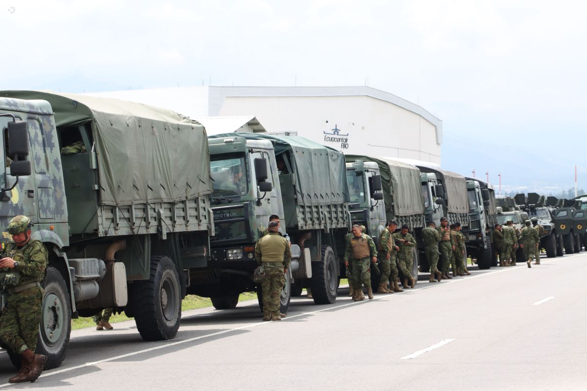 Convoy Humanitario de 1000 efectivos militares y policiales, organizado por el Bloque de Seguridad que se desplaza a de Imbabura, desde el aeropuerto de Tababela, para abastecimiento de la Provincia que lleva más de 21 días de paro convocado por la Conaie. Fotos : API/ Rolando Enríquez