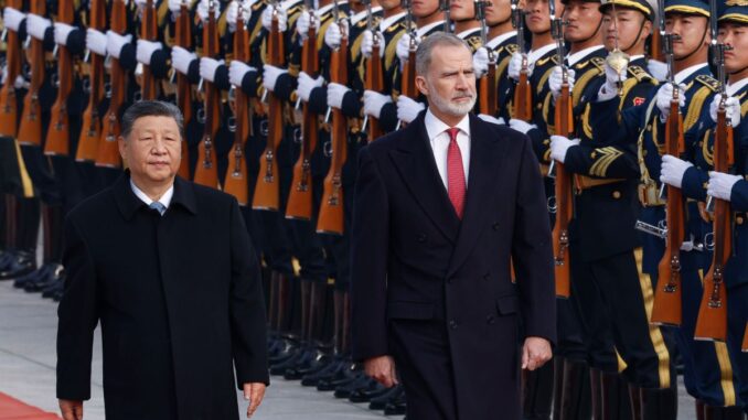 La reunión con Xi protagonizó la segunda jornada del viaje de Estado de los reyes a China y también la más institucional, iniciada con un recibimiento oficial en el Palacio del Pueblo, donde además de verse con Xi, Felipe VI sostuvo encuentros con el primer ministro, Li Qiang, y con el presidente del Legislativo, Zhao Leji.