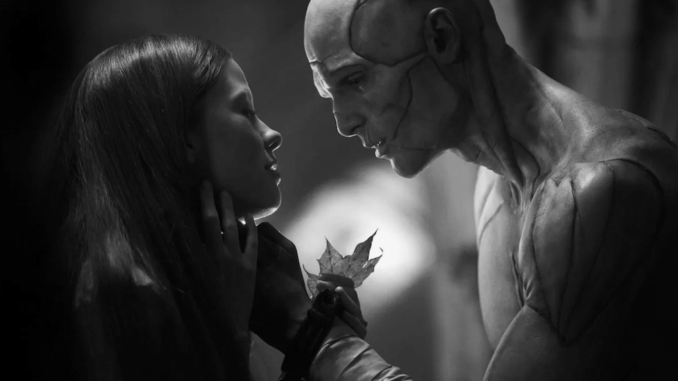 Para Del Toro, la humanidad, entonces, no residirá en el latido del monstruo sino en su capacidad de hacerse preguntas. Cuando la criatura persigue a Víctor, moribundo, en el Polo Norte, no lo hace por venganza; lo hace porque necesita respuestas. Una de las escenas más impactantes —la pequeña silueta del engendro en un desierto de hielo que bien pudo haber sido un grabado de Goya— condensa el todo: la conciencia del creador y su criatura, el imperio y sus víctimas, el romanticismo y su ruina. El monstruo se aleja de Víctor y se queda solo, mirando el horizonte blanco. No hay persecución con antorchas ni aldea en llamas; solo silencio y la certeza de que la verdadera monstruosidad fue haber sido abandonado.
