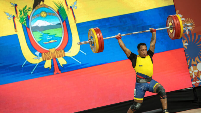 Jair Reyes se queda con la medalla de bronce en la categoría 71 kg de levantaniento de prensa en los Juegos Bolivarianos Ayacucho Lima 2025.