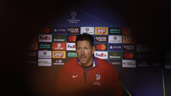 MADRID, 25/11/2025.- El entrenador del Atlético de Madrid, Diego Simeone durante la rueda de prensa ofrecida este martes en el estadio Metropolitano de Madrid. EFE/ Sergio Perez