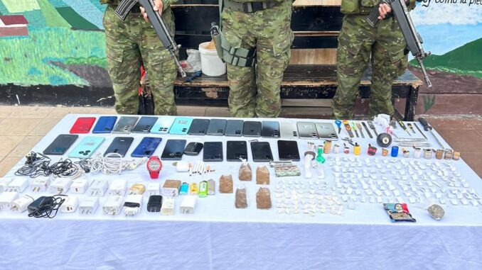Además, descubrieron en el pabellón uno de la cárcel de mujeres el inicio de la elaboración de un hueco, «lo que evidencia que los reclusos están intentando escapar o ingresar objetos prohibidos», apuntó el Ejército.