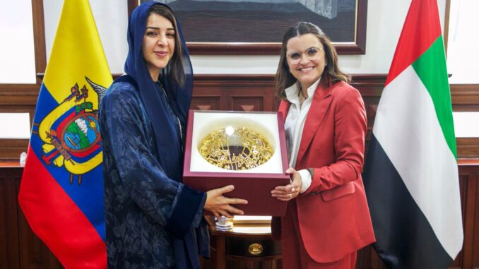 La presidenta de la República encargada María José Pinto se reunió con la ministra de Estado para la Cooperación Internacional de Emiratos Árabes Unidos, Reem Ebrahim Al Hashimy.
