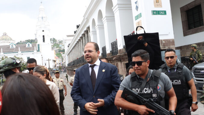 En ausencia de Noboa, María José Pinto ejerció como presidenta encargada, teniendo reuniones con delegaciones internacionales y firmando un decreto ejecutivo relacionado al sector hidrocarburífero.