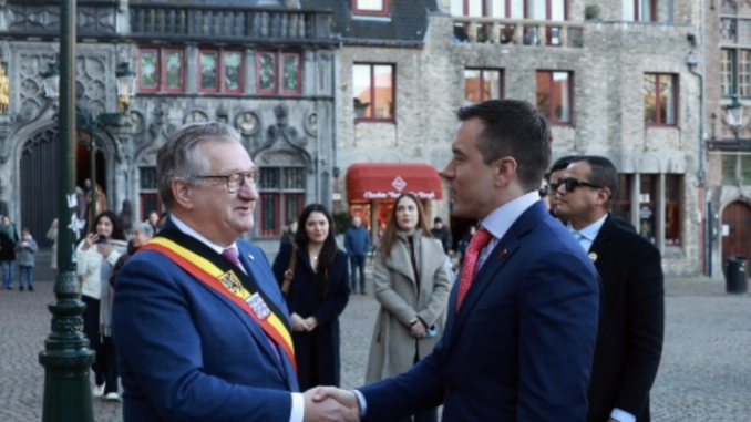 El presidente de Ecuador, Daniel Noboa, que se encuentra de visita oficial en Bélgica, se reunió este sábado con el alcalde de Brujas, Dirk de Fauw, en un encuentro en el que se abordaron asuntos como la cooperación económica, el turismo sostenible, la educación y la atracción de inversiones, informó la Presidencia ecuatoriana.