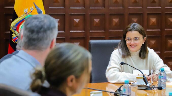 Reunión entre la vicepresidente, María José Pinto y Ministra de Salud con Lwrence Petroni, representante del Centro de Control y Prevención de Enfermedades. Foto: X, Embajada de Estados Unidos en Ecuador