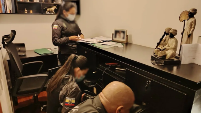 En las evidencias recabadas por la Fiscalía constan documentos, teléfonos celulares, computadores y otros dispositivos electrónicos. El Ministerio Público informó que estos elementos serán analizados como parte de la investigación.