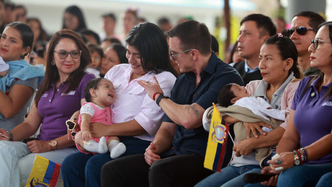En la Universidad Ecotec, Noboa estuvo con Zaida Rovira, ministra de Desarrollo Humano, encabezaba un evento relativo a la lucha contra la desnutrición infantil. El presidente dio un breve discurso en el que habló del proyecto y de algo más.