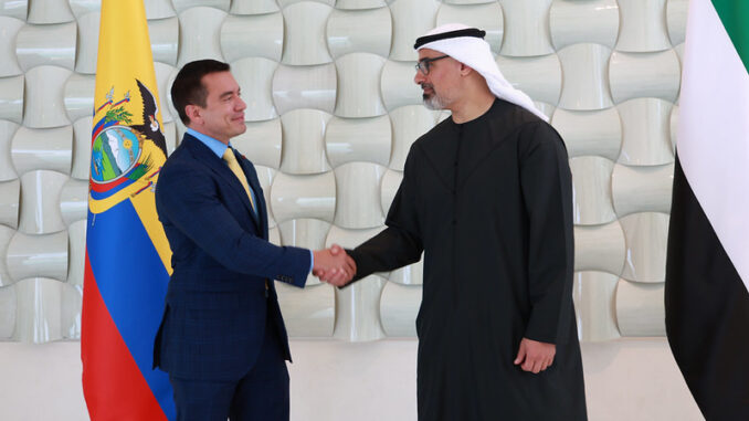 El presidente de Ecuador, Daniel Noboa, anunció este viernes, 20 de febrero del 2026, que el príncipe heredero de Abu Dabi, Khaled bin Mohamed bin Zayed Al Nahyan, visitará el país. En este marco se espera la firma del Acuerrdo de Asociación Económica Integral (CEPA, en inglés).
